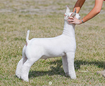 | Stillwell’s knew after a few days from being born that New Era was unique. When Dr. Tad and Doug Edge made the drive over to check him out, there was no question we needed him at RSG Sires for a white buck option. To be as shallow as he is, yet that round caged, deep twisted, fuzzy legged, and structurally correct is what everyone is after in the show lamb game. RSG Sires is excited to partner on him and excited to see his impact across the country. |