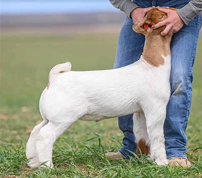 | When searching for elite Fullblood genetics to add to the lineup, it only made sense to go to the O.G. of the game himself – Lary Duncan. Nestled away in Wingate, IN we discovered an absolute outlier for the breed. We believe this guy can not only rapidly improve all registered genetics, but realistically has a place making all goat lineage bigger legged, wider based, and more correctly built. |